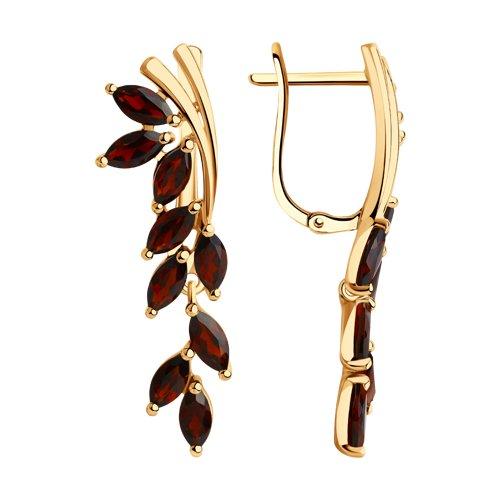 Серьги длинные SOKOLOV, красное золото 585 проба, вставка гранат, 727019
