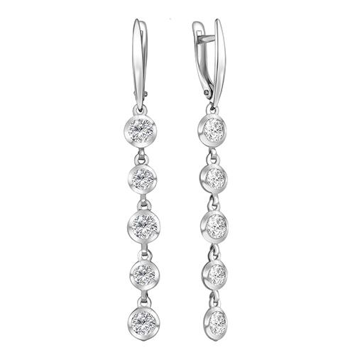Серьги длинные BIRYUZA, серебро 925 проба, вставка цирконий, 90-02-7388-01