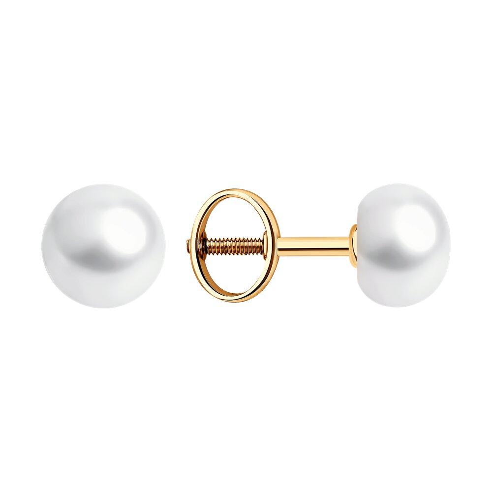 Серьги пусеты SOKOLOV, красное золото 585 проба, вставка жемчуг, 792416