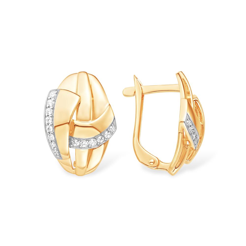 Серьги с английским замком 7 Карат, красное золото 585 проба, вставка фианит, П2217-508К14
