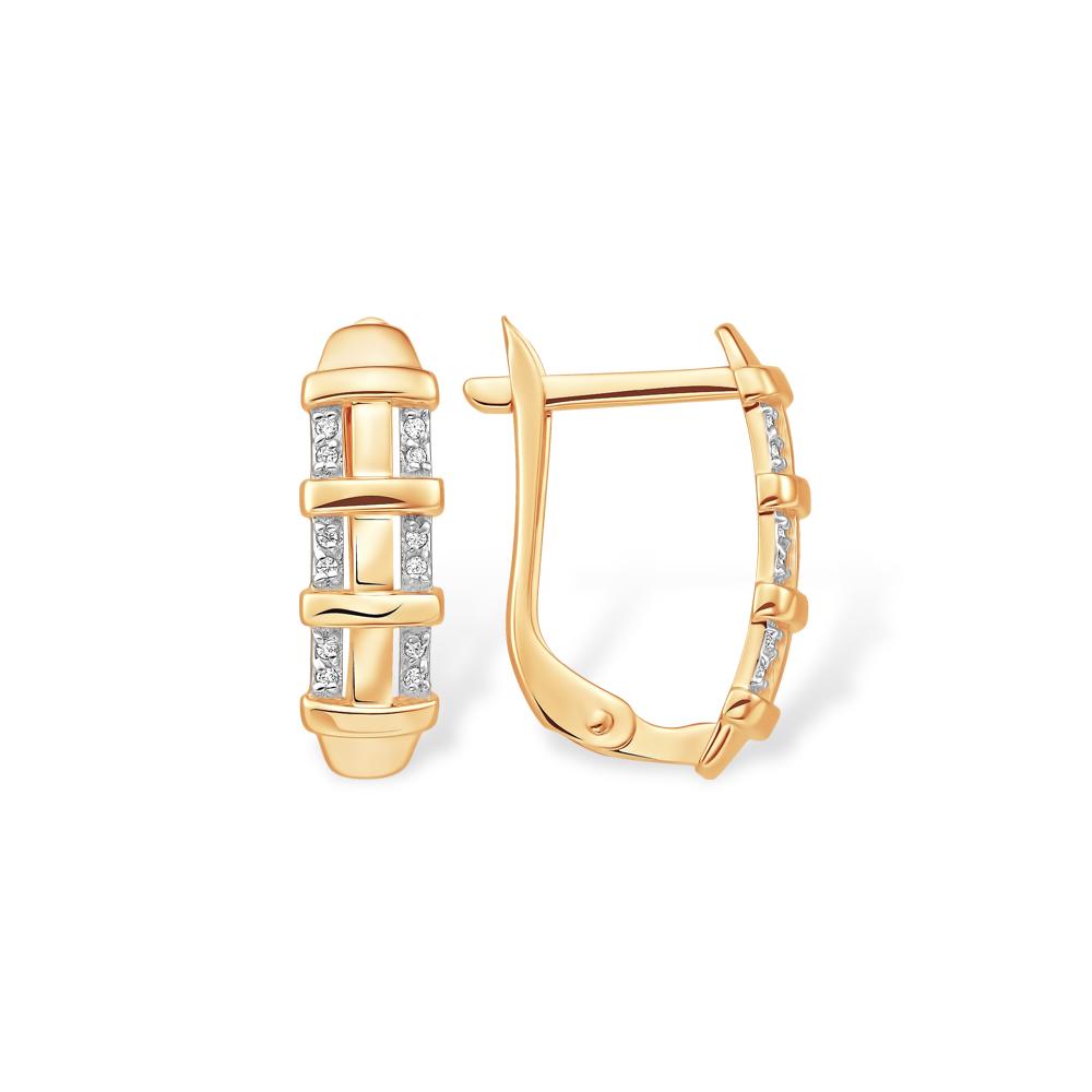 Серьги с английским замком 7 Карат, красное золото 585 проба, вставка фианит, П2217-524К14